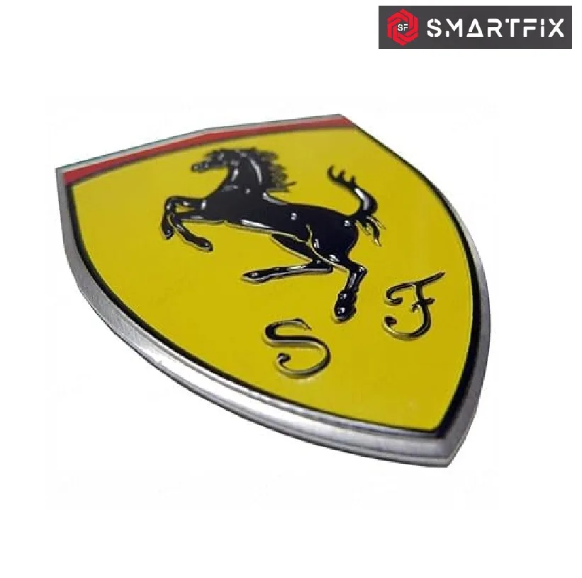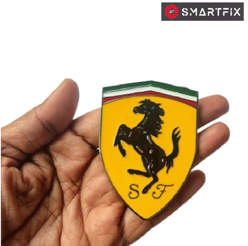 Fe-rrari 3D Chrome Metal Sticker Emblem Badge with Adhesive, Yellow Color, Universal Fit for Cars, Bikes and Laptops | Easy Application